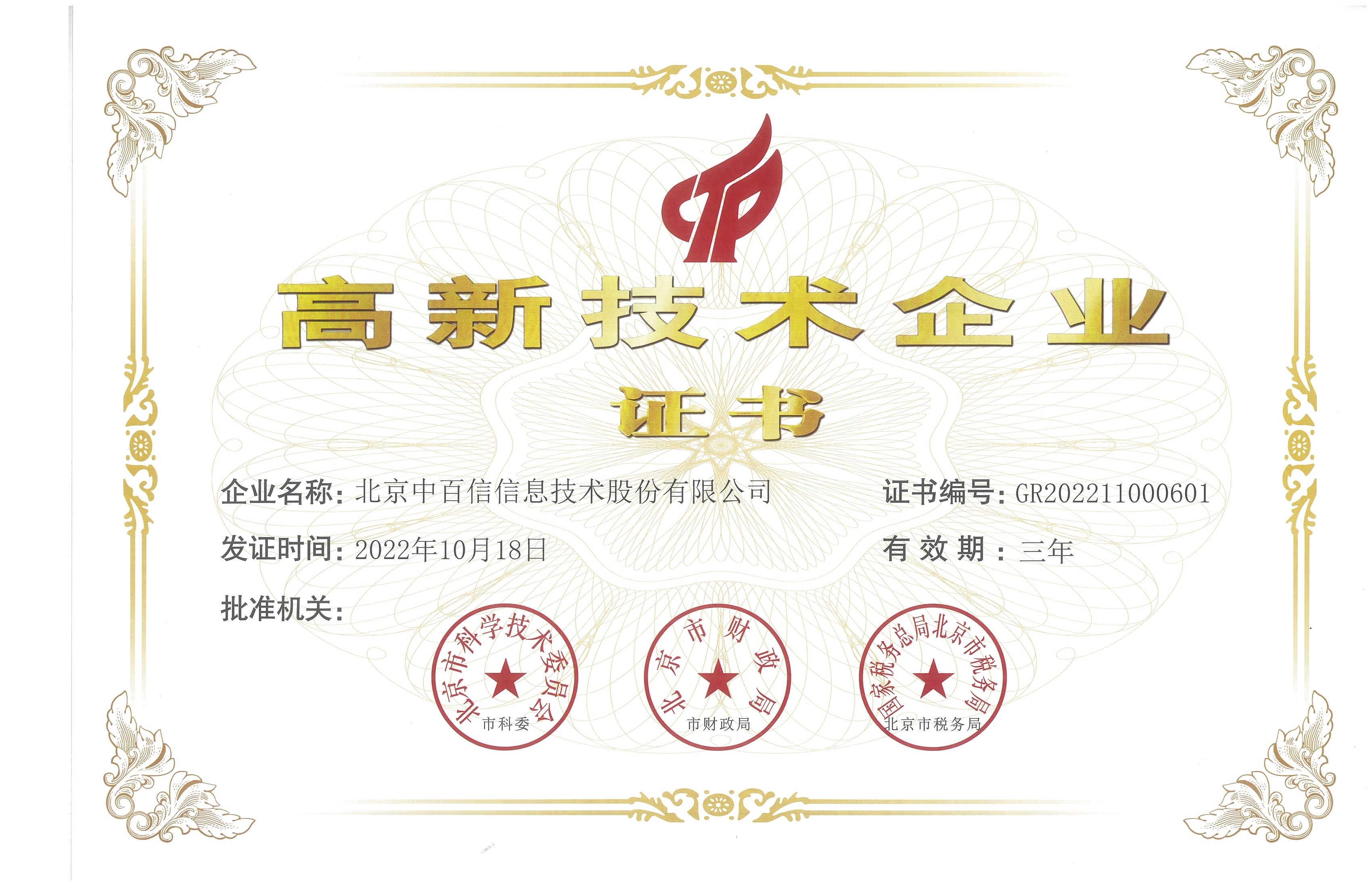 5月20日,京津冀(国际)高新技术企业大会在天津盛大召开,中百信荣获高新技术企业创新能力最高等级--5A级评价。