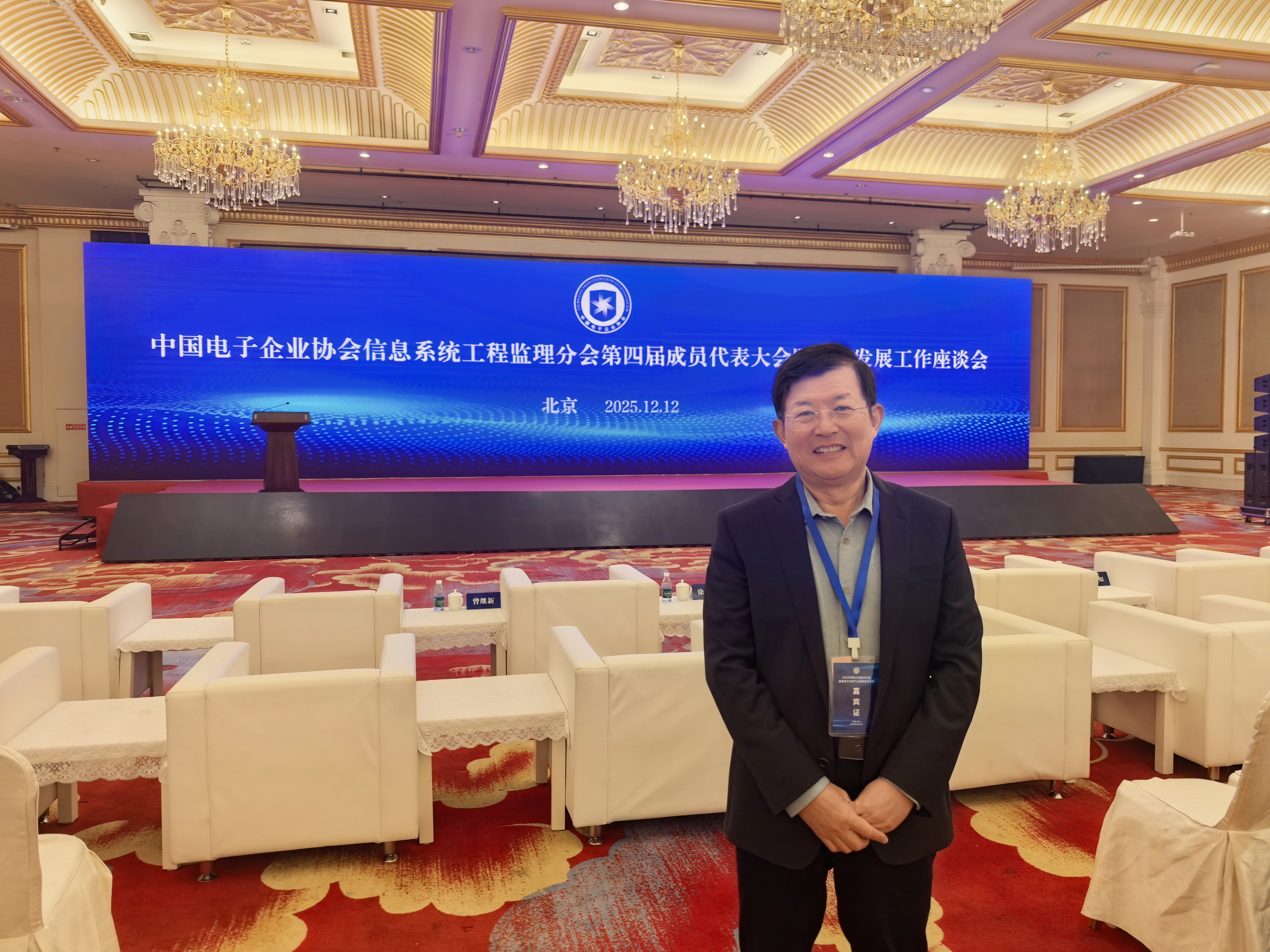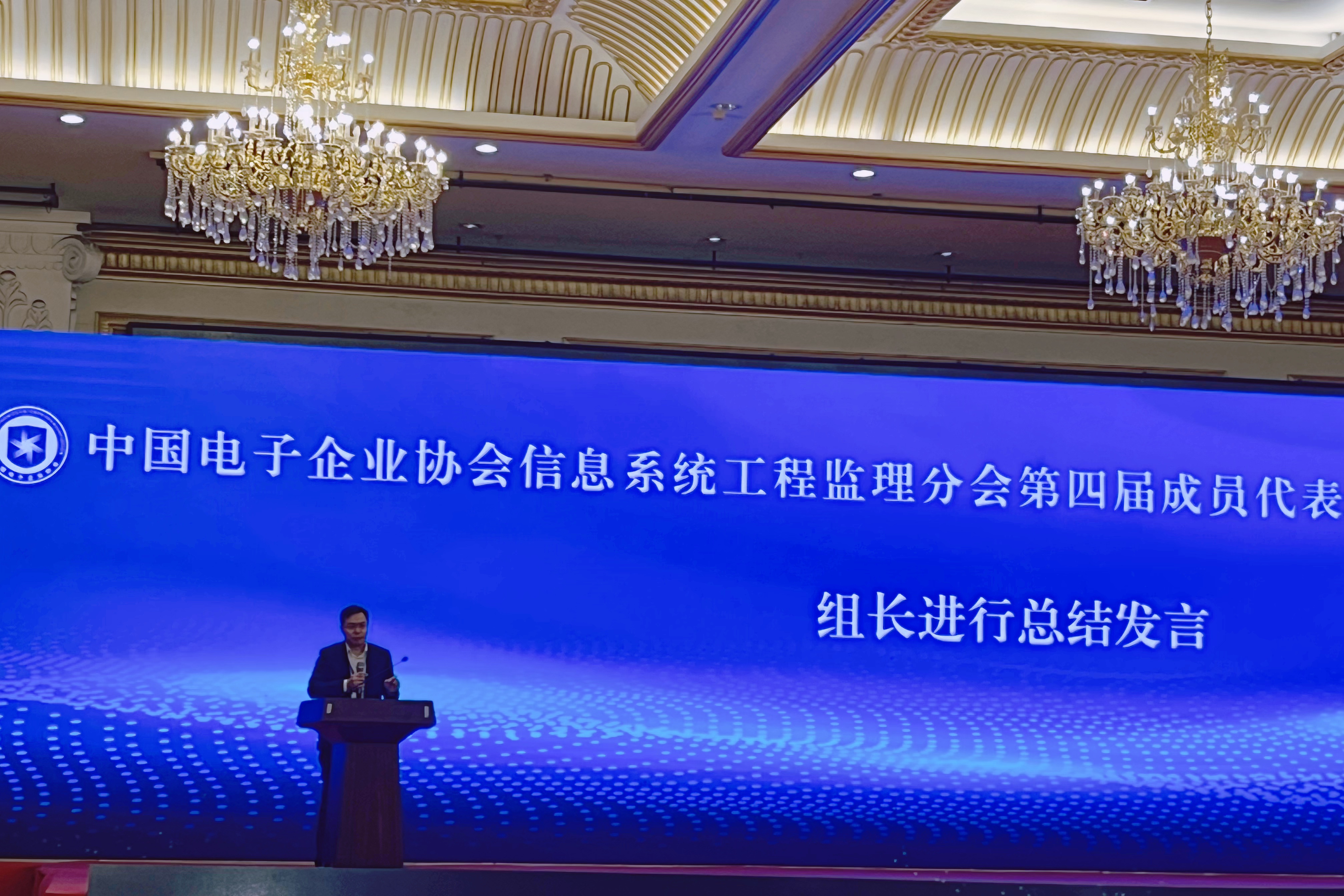 在同期举行的中国电子企业协会信息系统工程监理分会第四届成员代表大会上,经过民主选举程序,中百信股份公司总裁周威当选为分会第四届副理事长。该闭门会议于湖湾酒店金色大厅二层会议室举行,完成了理事会换届选举及新一届组织机构产生等重要议程。中百信集团董事长刘庆波博士在分组研讨环节,结合企业多年深耕信息系统工程监理领域的实践经验,对行业发展趋势、标准创新、如何突破行业困境和对协会的服务工作提出了建设性意见,并提出了同行间“和平共处五项原则“的倡议,为推动行业高质量与可持续发展贡献了专业智慧。作为新当选的副理事长,周威总裁在行业发展工作座谈会上发表了总结发言。