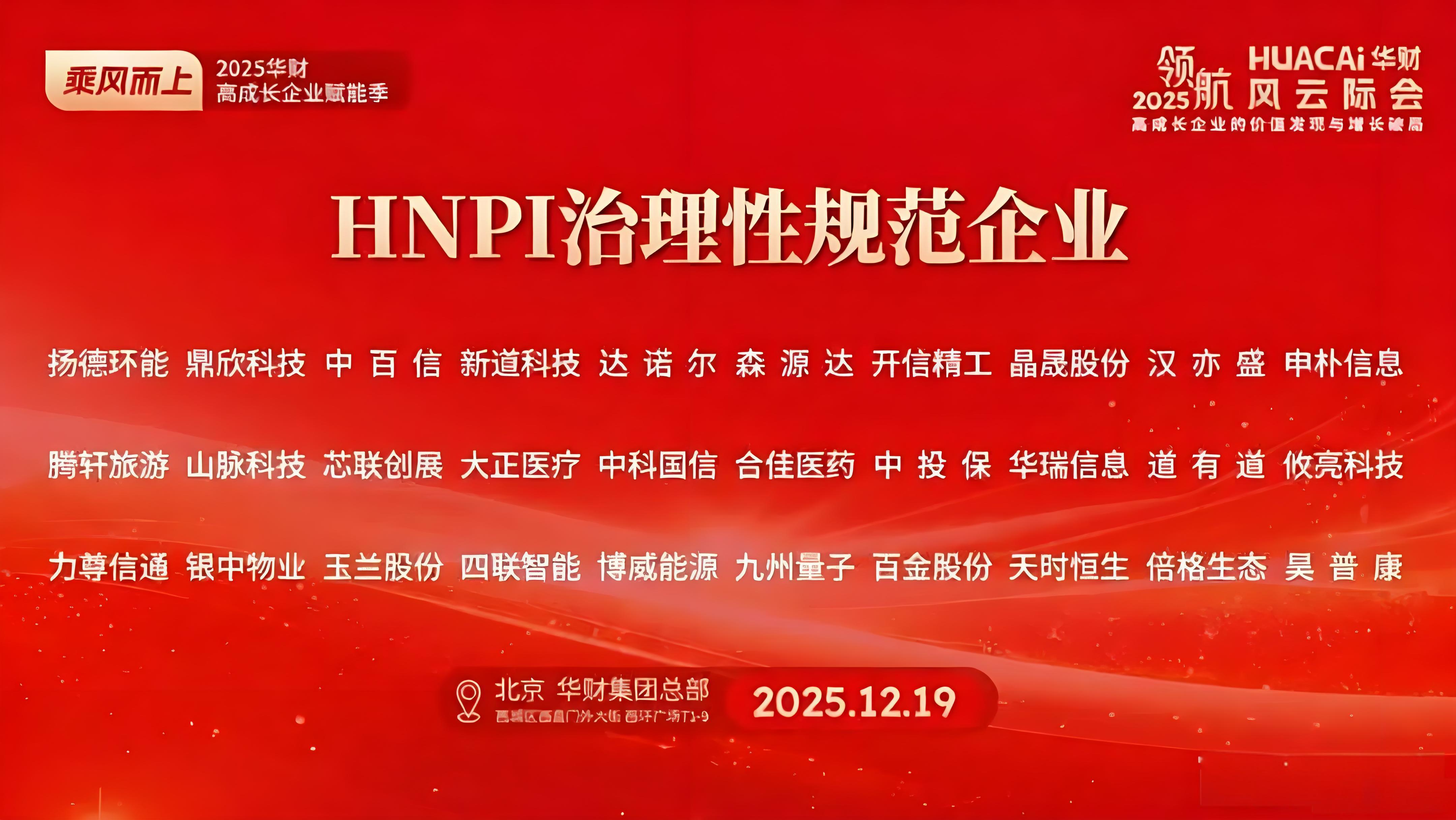 12月19日,“第九届北交所&新三板企业风云际会”在北京圆满落幕。会议期间,备受瞩目的2025年度北交所和新三板评选优秀榜单正式发布。中百信凭借在综合治理与透明度方面的卓越表现,在6024家参评企业中,跻身新三板治理与透明度排行榜 50 强,成功入选“HNPI治理性规范企业”;同时,董事长刘庆波博士荣获“HNPI年度先锋企业家”称号,充分彰显了企业在公司治理与领导决策方面的双重实力。 “HNPI治理性规范企业”评选围绕投资者保护总指数,通过事前逆向规避、事中控制与决策、事后背德惩戒三大路径,细分39项指标综合评定。中百信在治理结构、信息披露、合规运营等方面表现突出,体现了企业对投资者知情权、决策参与权与收益权的高度重视。